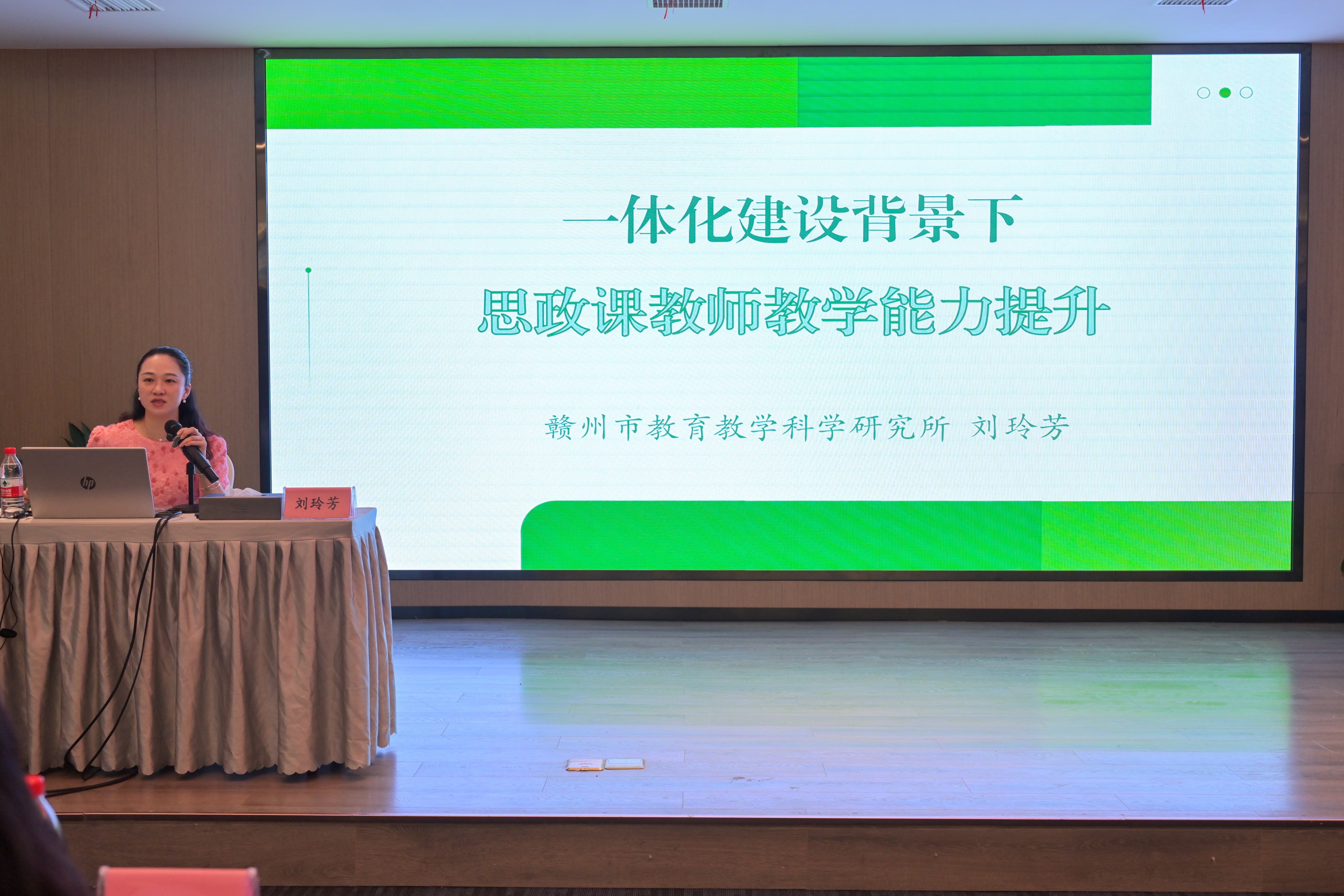 赣州市教科所中学思政课教研员刘玲芳以《一体化建设背景下教师教学能力提升》为题为学员授课,刘老师为我们揭示“什么是思政课一体化”“为什么推进思政课一体化建设”“如何推进思政课一体化建设”三大关键问题。他指出,思政课是落实立德树人根本任务的关键课程,能够沟通心灵、启智润心、激扬斗志,引导员工树立正确的世界观、人生观、价值观;思政课是中小学德育工作的主渠道,深化中小学思政课改革创新,统筹用好各类教育资源,提升思政课育人质量,教育引导中小员工扣好人生第一粒扣子,从小听党话、永远跟党走。