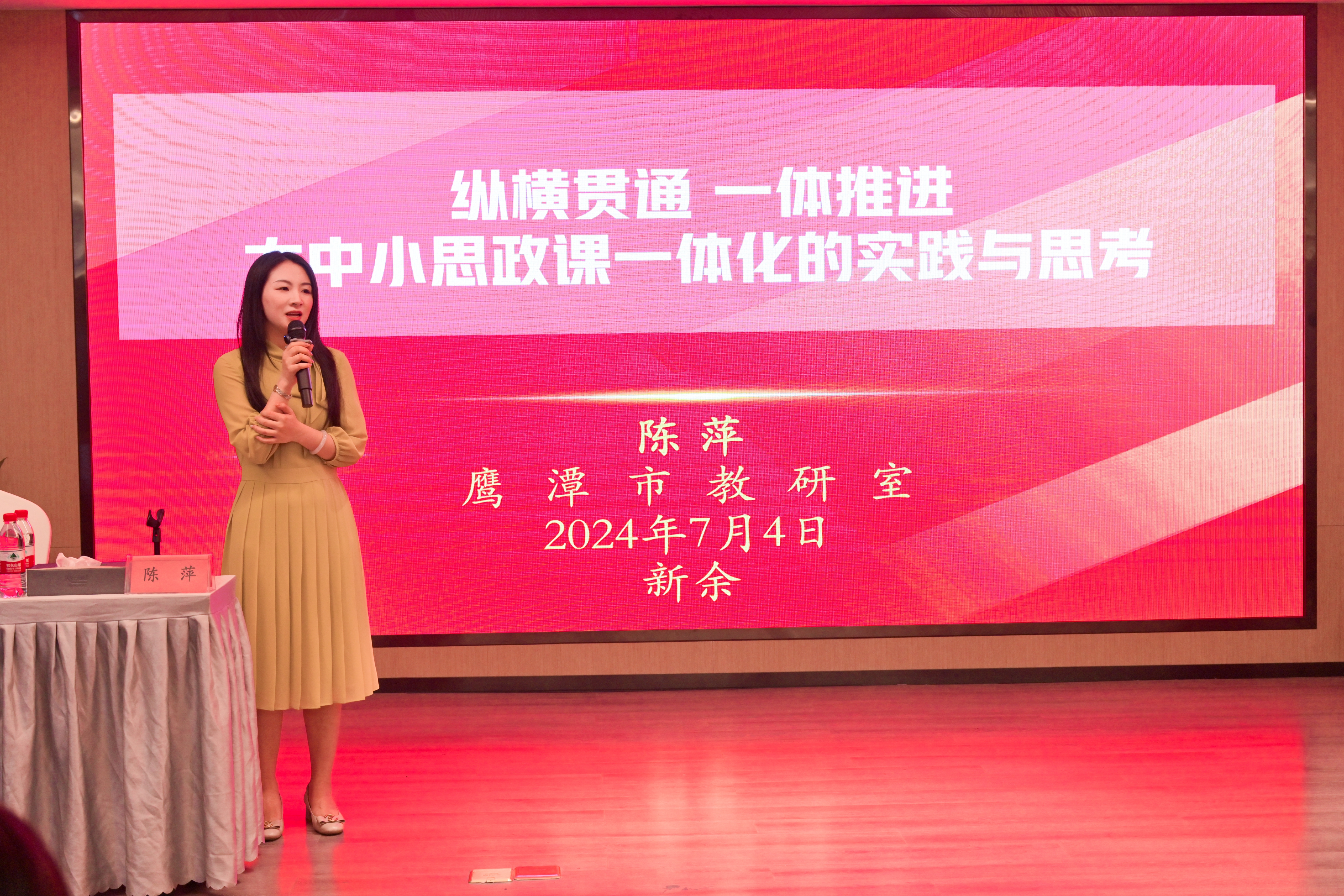 7月4日下午,鹰潭市教研室思政教研员陈萍老师以《纵横贯通 一体推进—大中小学思政课一体化的实践与思考》为题为学员授课,对于怎样的课,算是好课?陈萍老师结合多年一线工作实践,对好课标准,给出了自己的理解。一堂生动有趣的课,要紧扣教学大纲,老师越讲越有劲,员工听得津津有味,授课内容有深度、联系实际接地气等等。她从中国特色社会主义、道德与法治、哲学与人生等方面,联系班级管理案例,为大家做示范课例讲解,通过精心准备的内容和表达方式,引发员工思维启迪和情感共鸣,打造具有针对性和亲和力的思政课堂。
