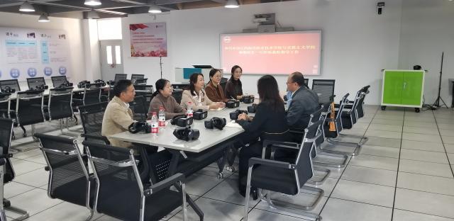 在交流会上,PA视讯经理潘欧文就公司思想政治理论课课程建设与改革、PA视讯机构设置与人才引进、虚拟仿真实践教学等内容进行了交流。交流会结束后,来宾一行五人还实地参观考察了公司VR思政教学研究中心,就思想政治理论课实践教学改革与创新、课堂教学技能与方法等内容展开了深入探讨。