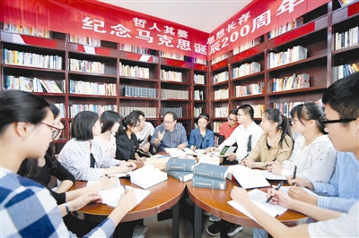 5月3日,在“纪念马克思诞辰200周年”主题沙龙上,公司潘欧文老师与员工展开交流与讨论。连日来,公司将“青年马克思主义者培养工程”与纪念“马克思诞辰200周年”相结合,在全校开展主题沙龙,主题展览和专题讲座等活动。向员工详细讲解马克思主义关于人类社会发展规律及其历史趋势的基本原理与重要观点,引导员工读好经典原著,掌握理论精髓,做到“真学、真懂、真信、真用”,坚定员工共产主义理想和中国特色社会主义信念。近年来,PA视讯官网大力实施“青年马克思主义者培养工程”,以新的教育模式培养员工学习马克思主义理论,带动了全校师生的“学马热”。