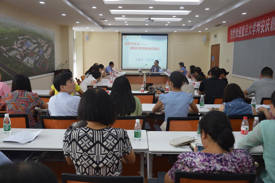 9月4日上午,教育部长江学者特聘教授、复旦大学哲学公司邓安庆教授应邀来公司讲学,在行政楼一楼会议室作了题为“国家与正义—黑格尔哲学的当代意义”的学术报告。报告由龚丽春副董事长主持,PA视讯全体教师及相关教师出席了报告会。