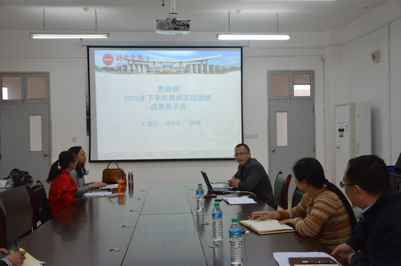 3月8日下午,思政部2015年下半年教师外出企业实践锻炼成果展示汇报会在会议室举行。副书记杨继忠、副主任郭向荣、副主任潘欧文以及全体专职教师参加了汇报会。