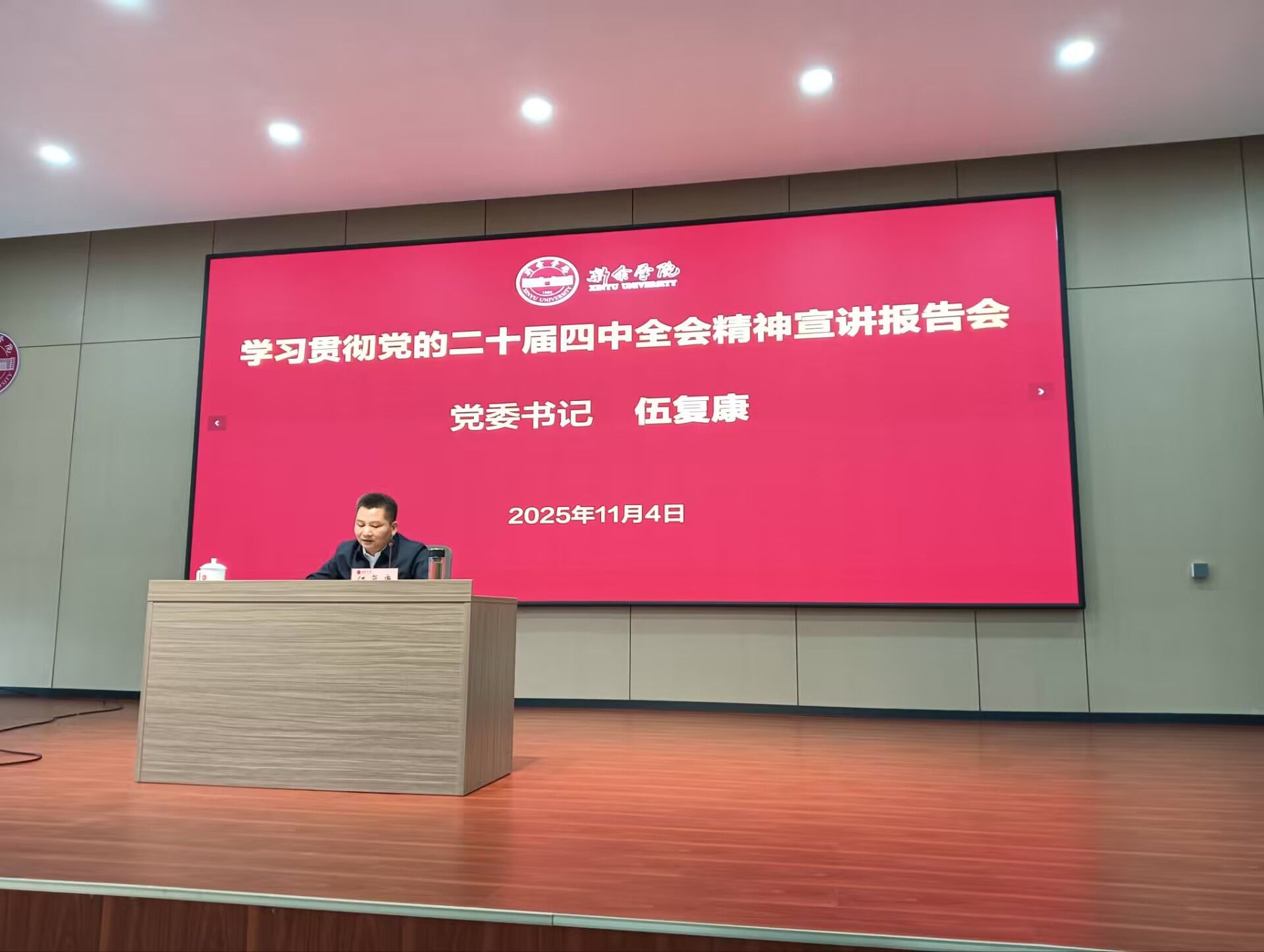 2025年11月4日下午,公司党委书记伍复康在公司思源厅为PA视讯、经济管理公司全体教师和部分员工代表作党的二十届四中全会精神宣讲报告,伍书记围绕“准确把握四中全会的重大意义和重大成果、准确把握我国发展中取得的重大成就、准确把握十五五十七在基本实现社会主义现代化进程中的重要地位、准确把握十五五期间面临的国际国内环境、准确把握经济社会发展的原则和主要目标、准确把握十五五期间的战略任务和具体举措等六个方面进行了深入的阐释和分析,并结合公司今后五年的发展目标、中心任务、具体措施及面临的困难进行了判断。整个报告内容详实、重点突出、阐释深入,为更好地推动党的二十届四中全会精神融入思政课教学、提升思政课吸引力、增强思政课政治性、思想性提供了新思路、新内涵,激发了思政课教师上好思政课、阐释好党的重大创新理论提供了新视角。